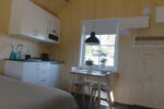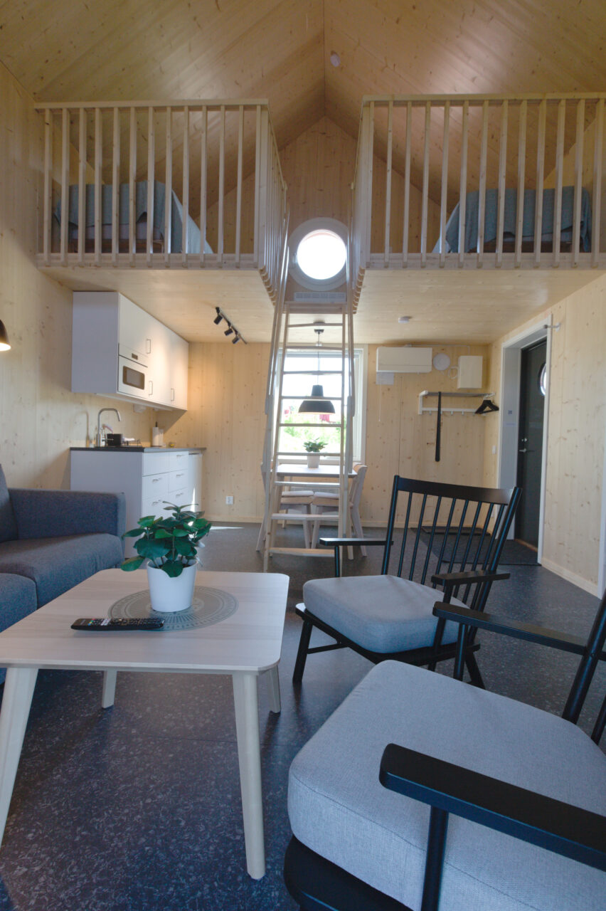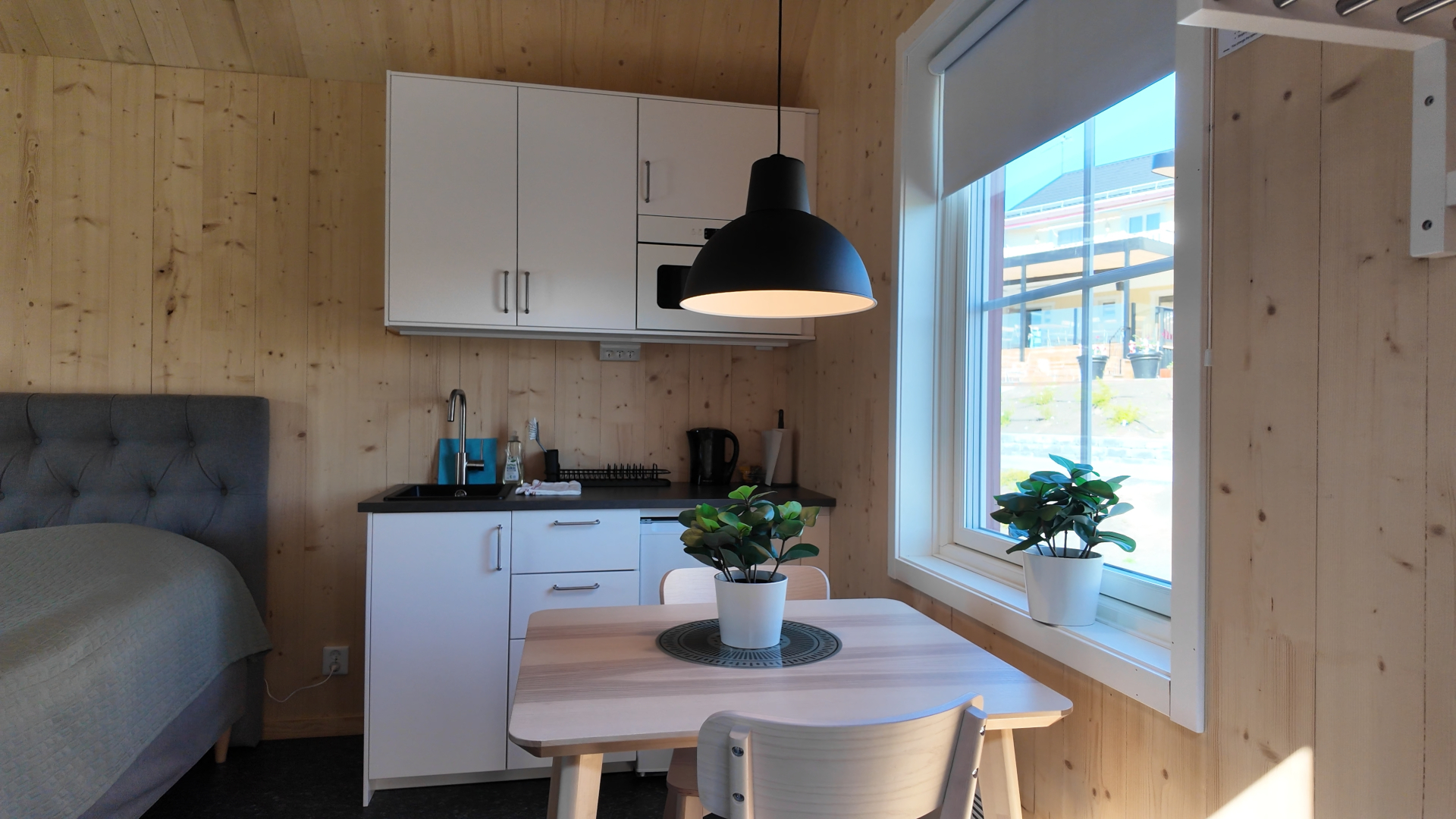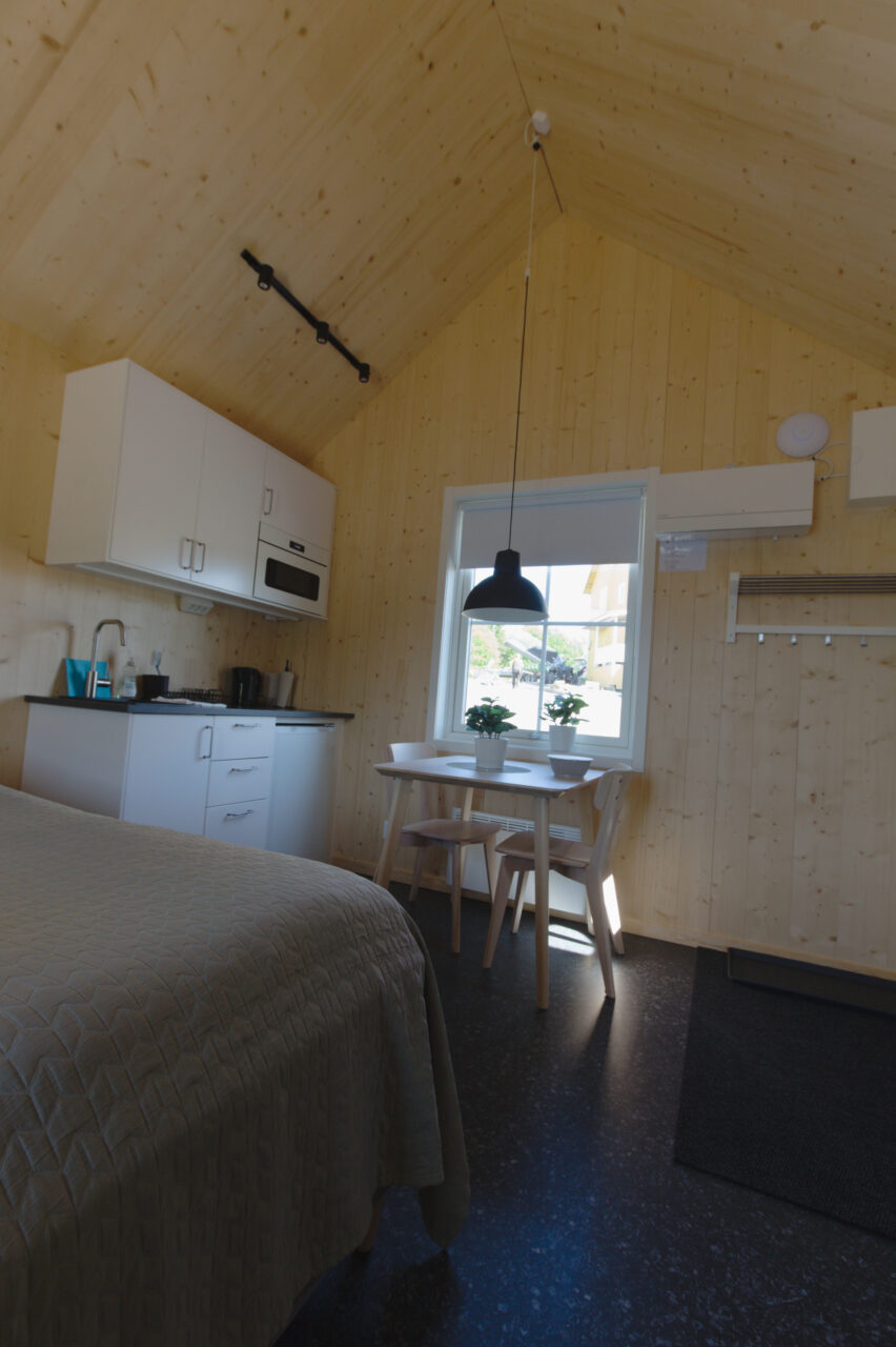 Varje stuga har en egen altan på kajen med utemöbler. Sängkläder & handduk och slutstädning ingår i priset men allt ska vara undanplockat och diskat när du lämnar stugan. I stuga 1 och 4 är husdjur välkomna.