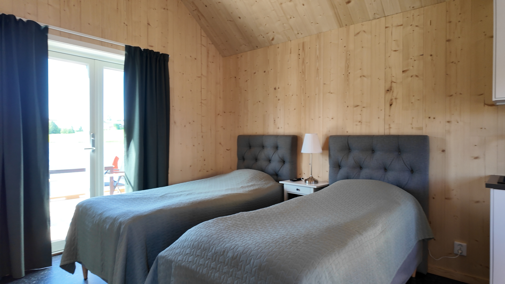Mitt i byn finns sex sjöbodarna som du kan hyra, 3 bodar med 2 bäddar och 3 lite större med 4 bäddar. Samtliga är modernt utrustade med kokplattor, micro, kyl och eget badrum. Självfallet finns snabbt Wifi och Play TV.