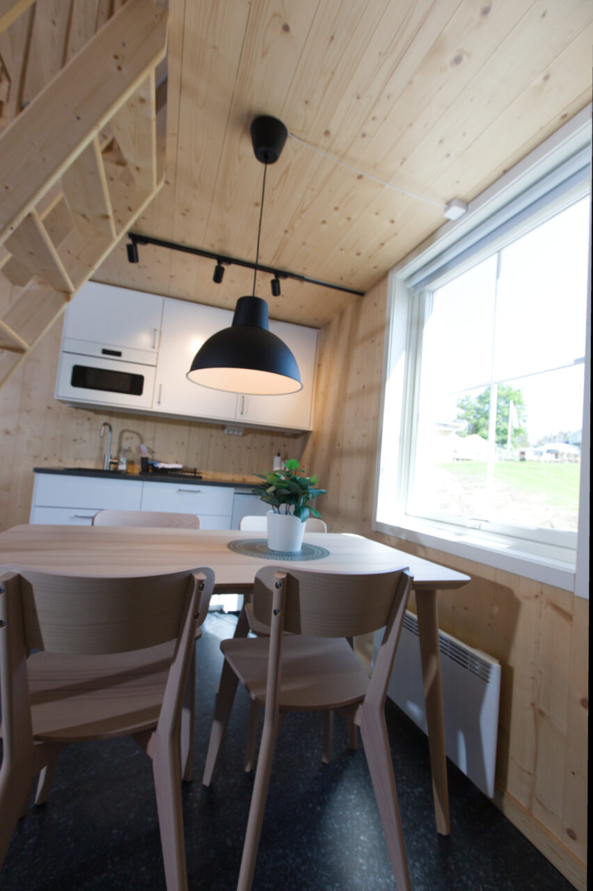 Stugorna ligger i parken Edun, med lekpark, badplats, grillkåta och bastu som kan lånas genom att man ringer ett telefonnummer.